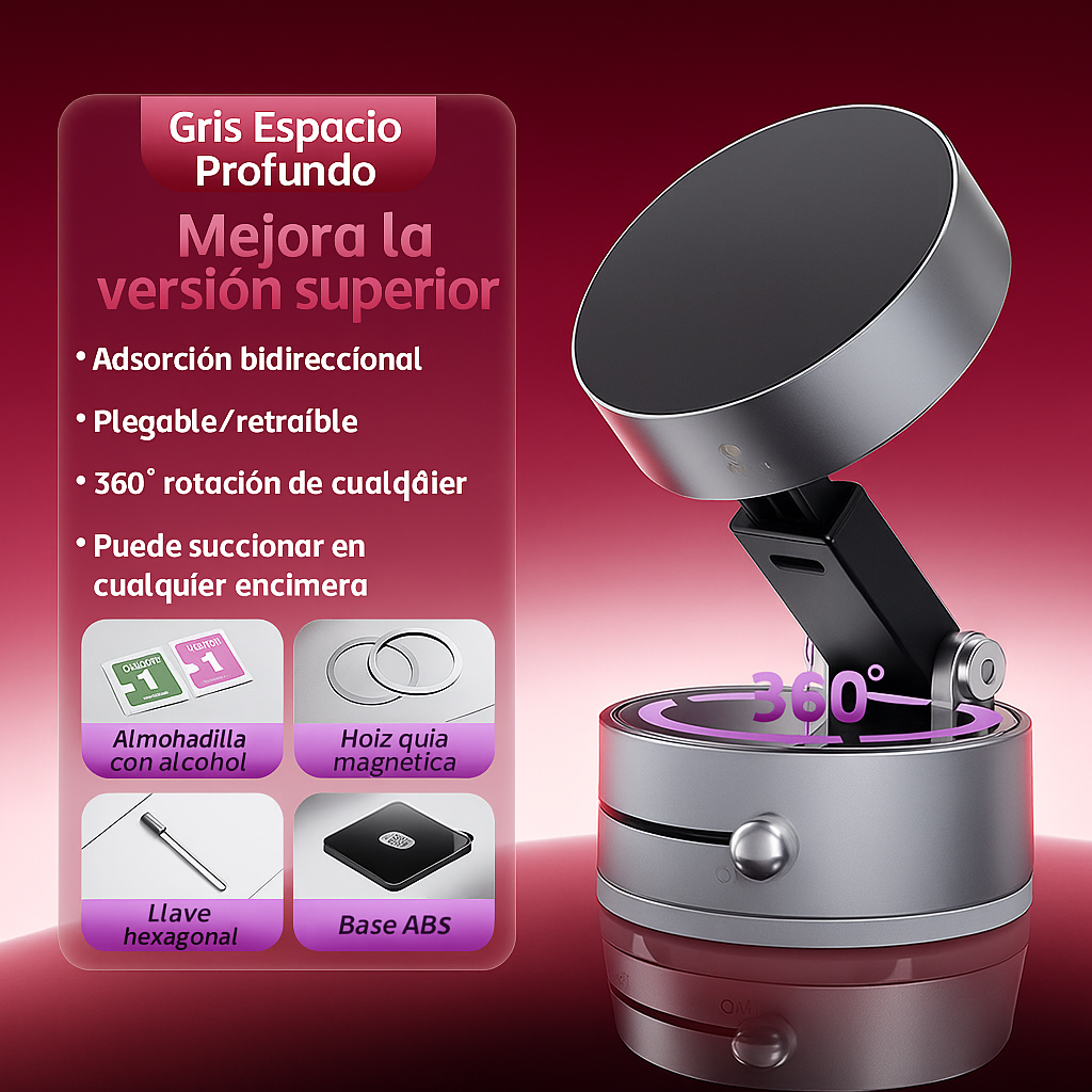 Doble fuerza: succión al vacío + imanes de neodimio N52.